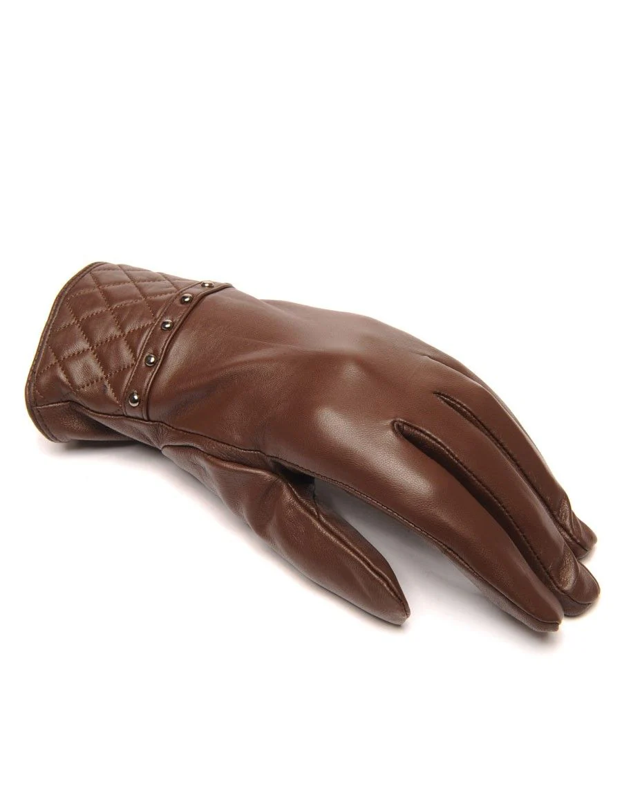 Gants en cuir chocolat LuluCastagnette clouté